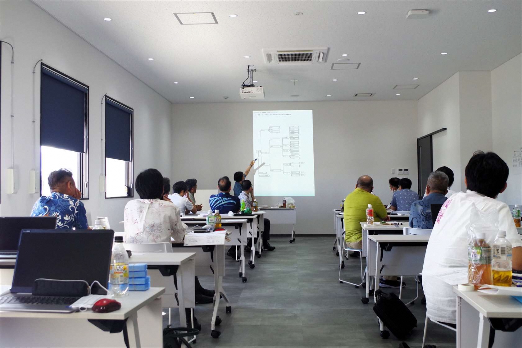 研修は、全国で最先端の色々な現場を見てこられた東京のコンサルティング専門の方に長年依頼しています。社員のプレゼン力や指導力、管理能力が少しずつ上がってきていると感じています。新入社員研修、主任研修、役員研修などのレベルに応じた研修を、年に5~6回依頼しています。先日も丸2日かけて、中長期組織体制を考えるトップ研修を、各部門の長や役員が集まって行いました。うるま市にある“タップホスピタリティラボ”(※) という施設を見学も兼ねて利用しましたが、最新技術を体感し面白い研修になりました。