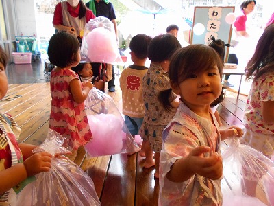 色とりどりの装飾やわたあめ、ヨーヨー・仮面が並び、園内はまるで本物のお祭りのような雰囲気に包まれました。