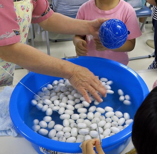 親子やお友達と一緒に参加して、カイコの繭から糸を挽いてランプシェードを作ろう!!