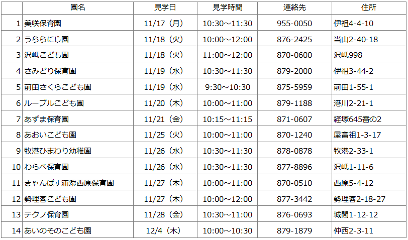 保育資格をお持ちの方、保育士の仕事に興味がある方を対象に、浦添市内保育施設見学会を実施します。