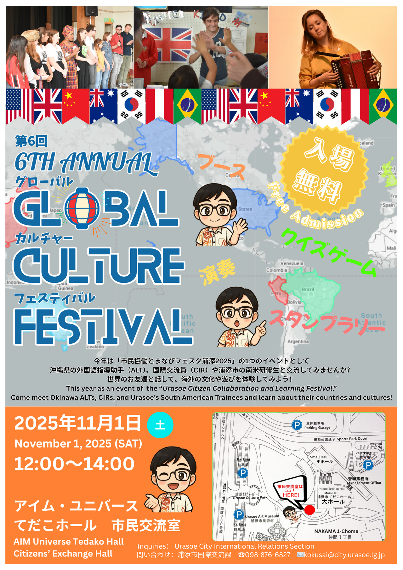「グローバル・カルチャー・フェスタ」が「市民協働とまなびのフェスタ浦添2025」の1つのイベントとして8年ぶりに復活します!