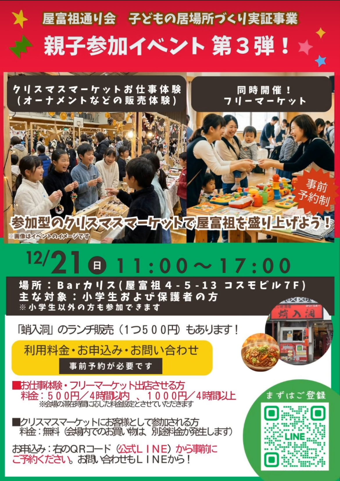 屋富祖通りで、小学生のための居場所づくりの取り組みとして、12/21(日)はクリスマスマーケット・お仕事体験を行います!