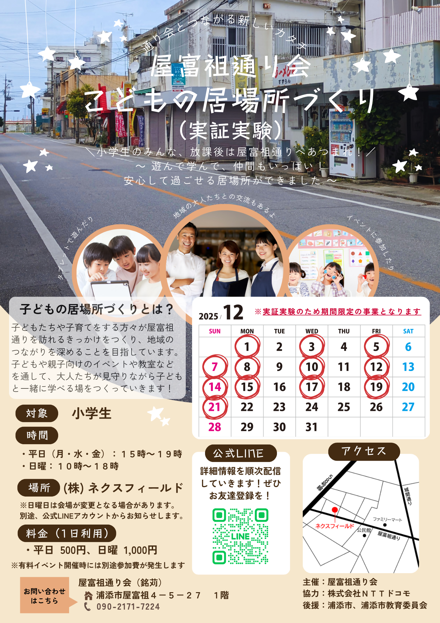 屋富祖通り会子どもの居場所 実証実験の公式LINEでお知らせします。 |