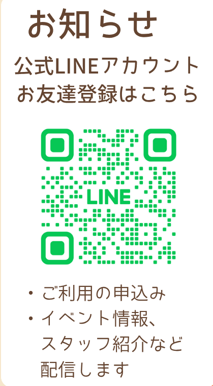 初回利用時に公式LINEの友達登録、情報の登録が必要となります。LINEのQRコードからご登録ください!また、利用は1日単位から可能で、受付や居場所の利用時には保護者の付き添いは不要です!
