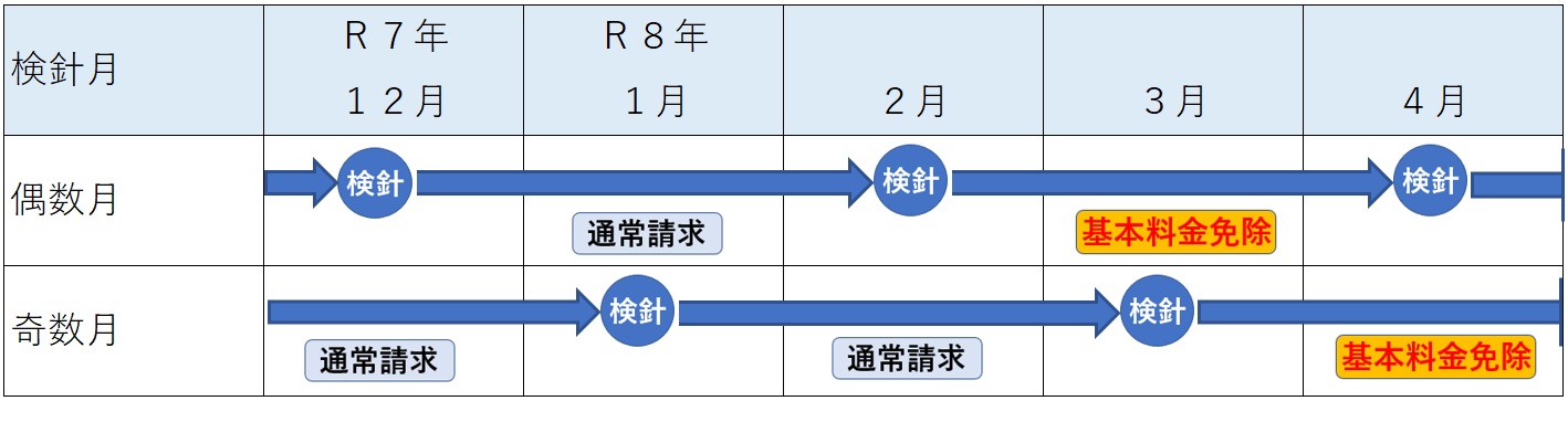 偶数月検針地区:2月検針分(3月請求分)