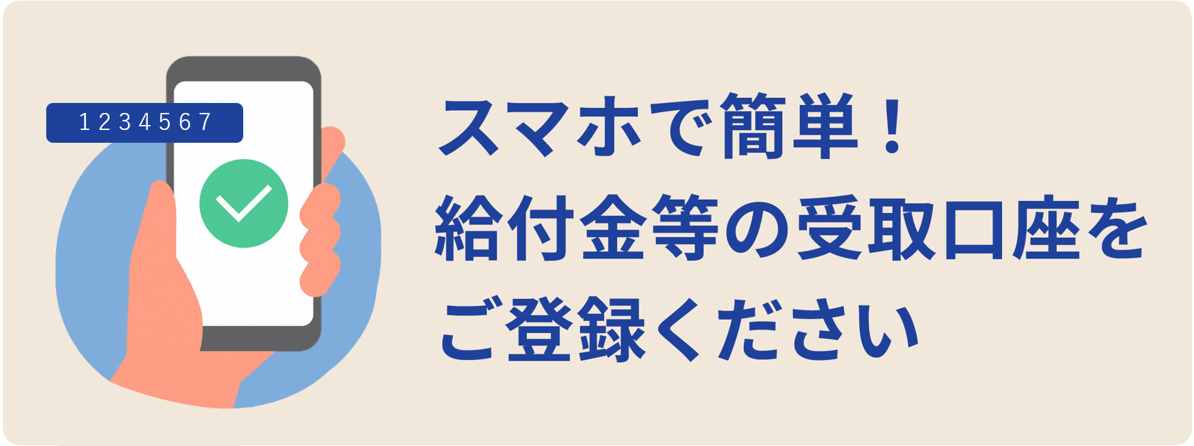 ご登録いただくのは「受け取るための口座情報」のみです。国や市役所が、口座の残高を確認したり、勝手にお金を引き出したりすることはありませんのでご安心ください。