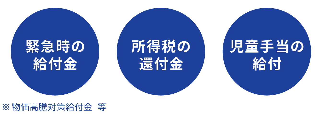 児童手当や年金、所得税の還付金、緊急時の給付金などの申請時に、口座情報の確認が不要になります。