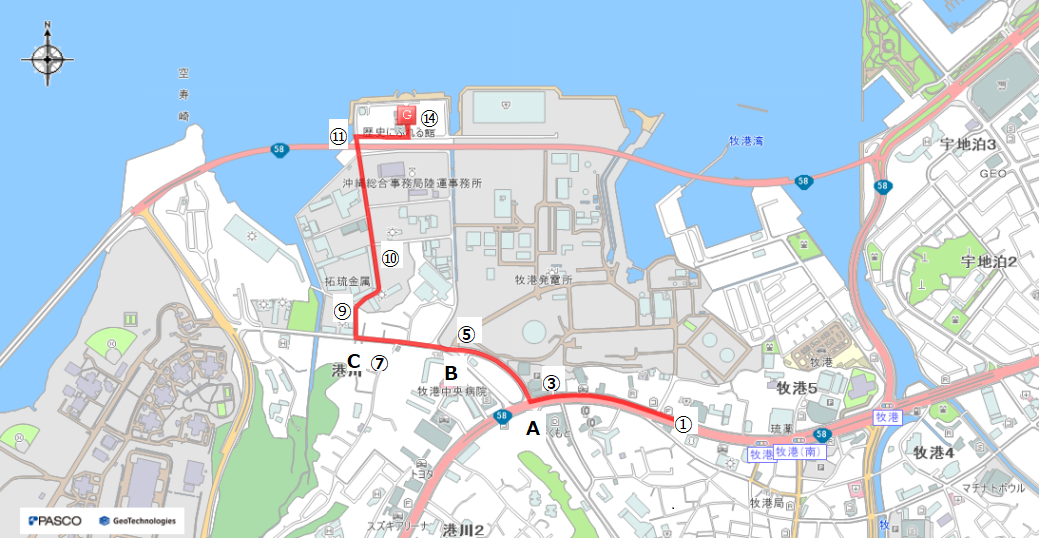 ルート1:那覇方面から ルート2:宜野湾方面から