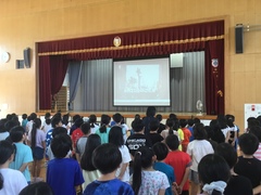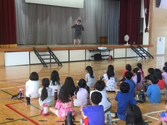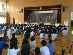 本日の2校時、平和講演会が本校体育館で行われました。講師には浦添市教育委員会教育長の銘苅 健先生が来校され、沖縄戦一人芝居「いくさゆーぬ ゆっかぬひー」を演じてくれました。教育長の迫真な演技に、神森っ子たちも釘付け。戦争の悲惨さ、怖さを語り、「命こそ宝」、命のリレーについて演技を通して伝えていました。劇が終わると全校児童で「沖縄から平和の歌」を合唱しました。最後に児童代表の佐久川 航さんはお礼の挨拶で「今日の講演会で感じたことは、戦争はたくさんの命を奪ってしまう、平和がずっと続いてほしい。」と銘苅教育長へ伝えました。銘苅教育長、本日は誠にありがとうございました。
