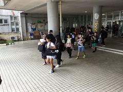 台風14号の影響であいにくのお天気ですが、5年生の自然教室がスタートしました。これまで事前準備を重ねてきた5年生。1泊2日のこの宿泊学習で、しっかり学んできます。出発式では児童代表の発表で「自然体験学習で楽しみにしていることは野外炊飯です。普段とちがって野外で調理することにワクワクしています。自然教室ではみんなで助け合うこと、自然について学習したい。」と発表してくれました。5年生のみなさん、友情を深め、共に協力し、安全にきをつけ、自然教室を楽しんでください。