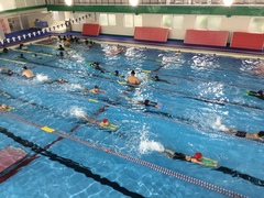 本日より、沖縄スイミング(浦添校と前田校)において4年生と5年生の水泳学習が始まりました。子ども達はそれぞれ練習コースに分かれて「け伸び」「バタ足」「クロール」「平泳ぎ」をいっしょうけんめい練習していました。個々の目標に向かって練習を頑張っています。応援よろしくお願いします。