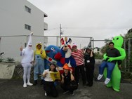今朝7時30分から前田小学校では、琉球新報のマスコットキャラクター「りゅうちゃん」と琉球ゴールデンキングスのキャラクター「ゴーディーくん」も参加しての【ハローウィン立哨大作戦】を行いました。