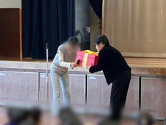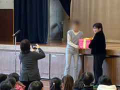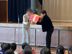 全校児童に見える形で贈呈することができました。たくさんのご協力ありがとうございました。