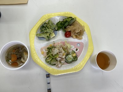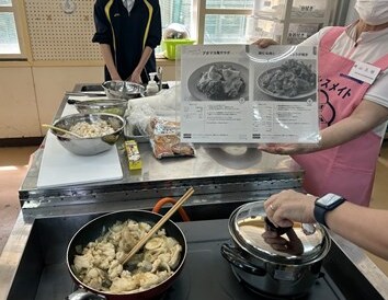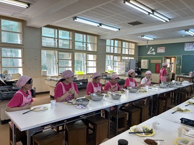 浦添市食生活回全推進員協議会の8名の委員のみなさんが来校し、本校の生徒のに食育講演会及び減塩を意識した調理実習を開催していただきました。推進員のみなさんは、児童生徒向けの活動や、成年、高齢者向けの講演会等を自治会等で開催し、食生活改善を推進しているとのことでした。参加した生徒は、家庭でなかなか台所に立たない生徒が多いとか。コミュニケーションを取りながら良い体験をさせていただきました。