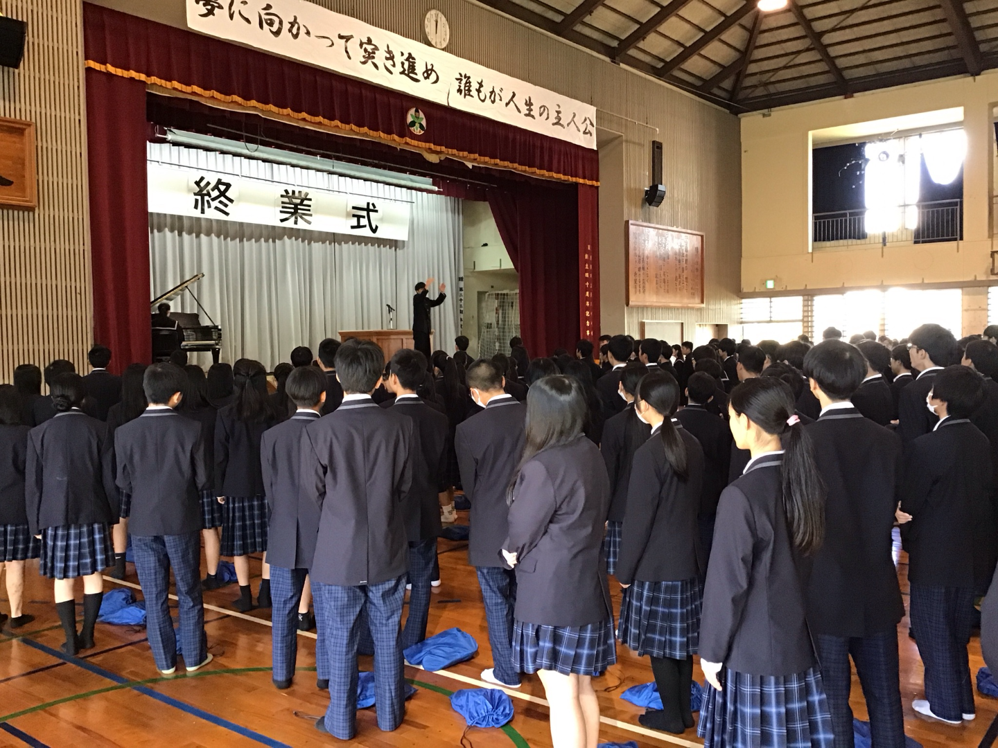 朝は全体朝会が行われ、スポーツ面・文化面の表彰が行われ、多くの生徒の活躍が表彰されました。