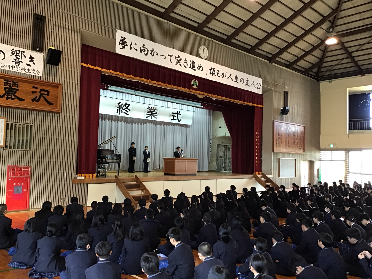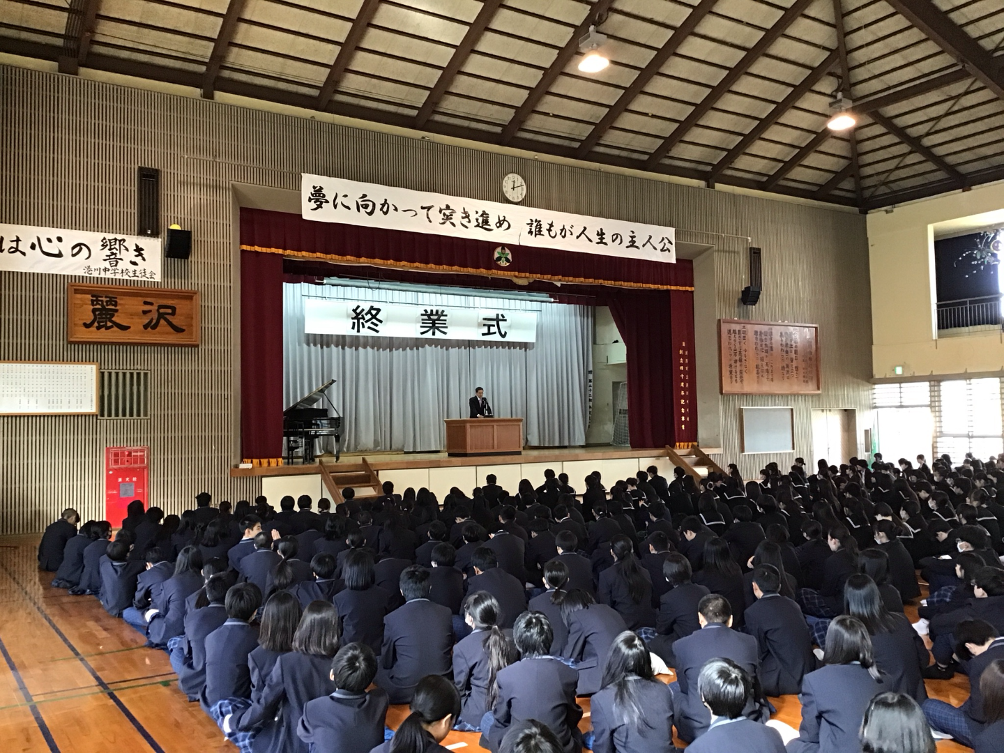 4校時には2学期の終業式が行われ、最初に各学年の代表から2学期の振りかえってのあいさつがあり、