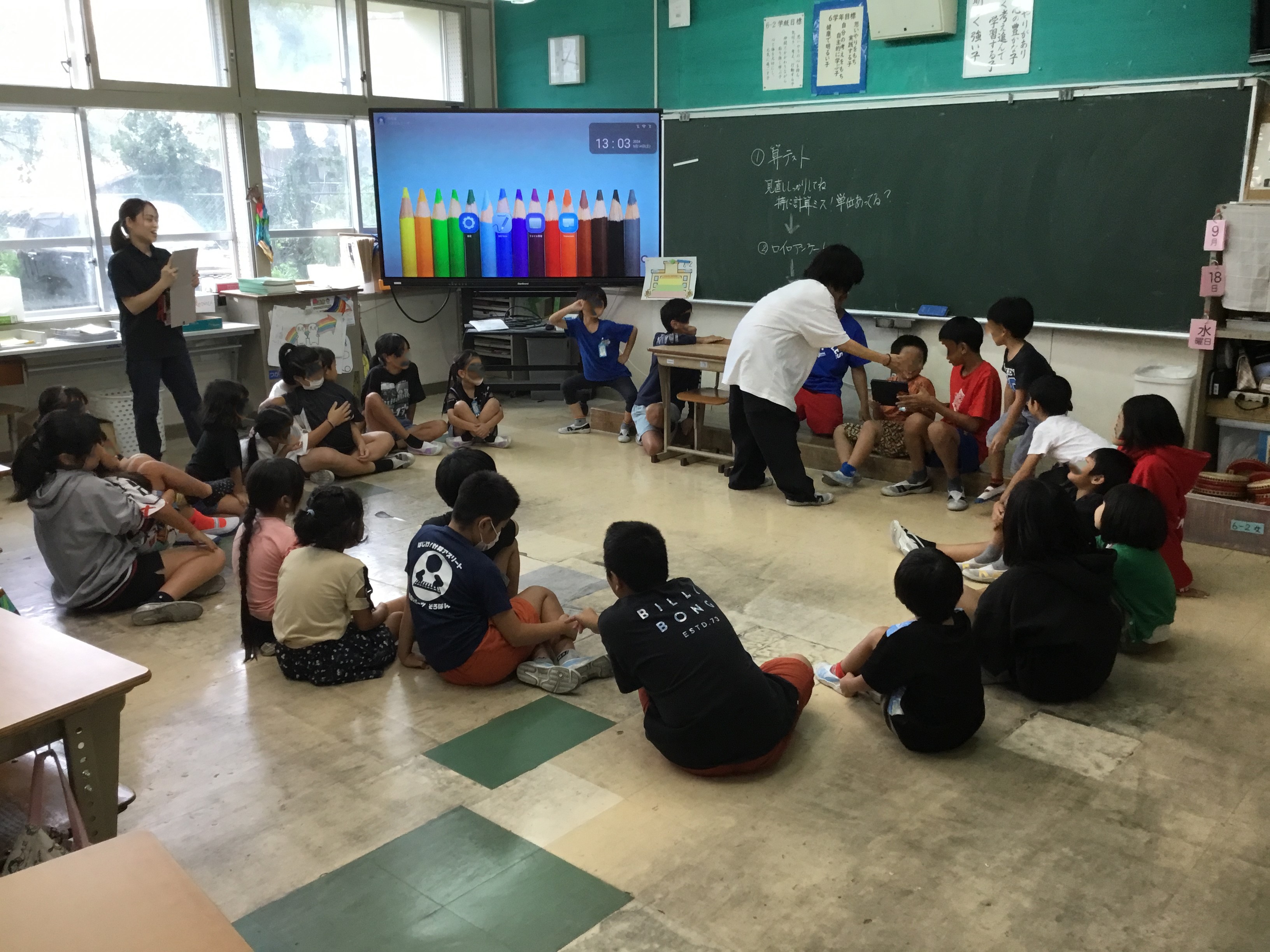 今日、異学年交流がありました。1年生と6年生、2年生と4年生、3年生と5年生が楽しく交流しました。