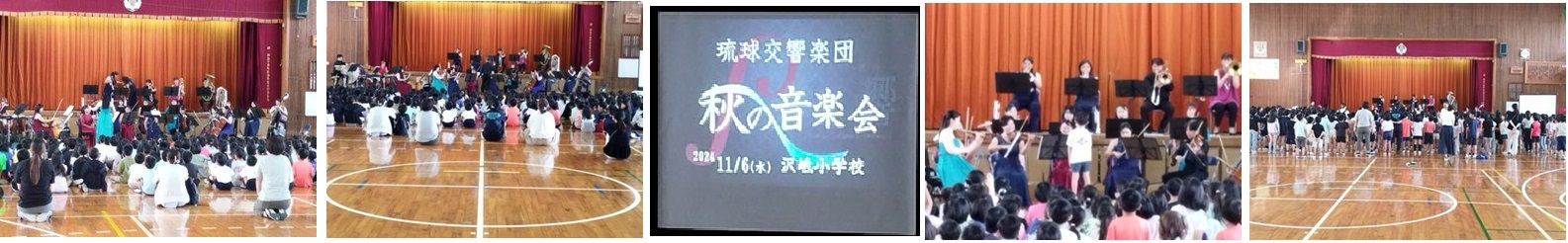 11月6日(水)琉球交響楽団をお招きして「秋の音楽会」と銘打って、オーケストラの演奏を全児童で鑑賞しました。総勢25名によるたくさんの楽器の音色とソプラノソリストの歌、「天国と地獄」に始まり様々な有名曲の演奏など豊かな音色に包まれた時間を子どもたちは堪能することができました。