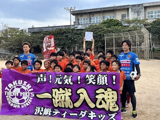 11月6日(水)放課後、FC琉球の富所 悠選手と鍵山 慶司選手が来校されて、本校の沢岻ティーダキッズ(サッカー部)と交流・指導を行ってくれました。憧れの選手との交流は、子供たちに大きな夢と希望をあたえてくれたと思います。