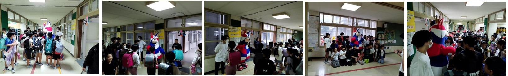 11月8日(金)琉球ゴールデンキングスのマスコット・ゴーディーが学校に来てくれました。朝はやくから登校する子どもたちへ挨拶、ハイタッチをしてくれました。ゴーディーの周りには子どもたちがいっぱい!朝の雨降りの天気を吹き飛ばすくらいの笑顔や笑いが校舎に満ちていました。