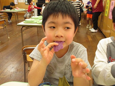 完成したムーチーは、給食の時間に美味しくいただきました。地域の方との温かい交流を通して、