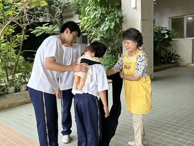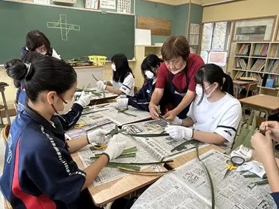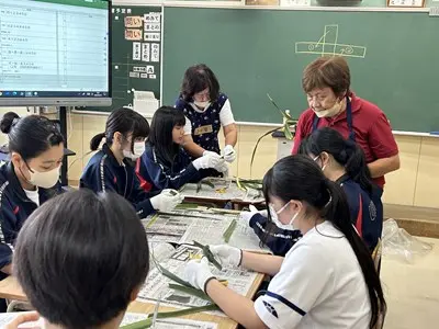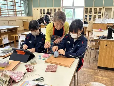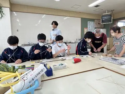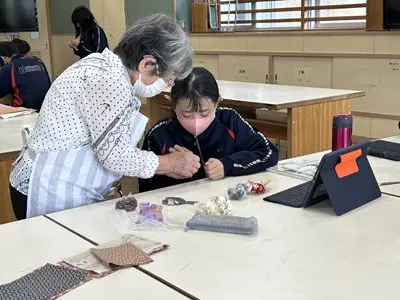 地域の皆さんを講師としてお招きして家庭科の授業を実施しました。お手玉づくり、凧づくり、アダンの風車づくり、赤ちゃんをおんぶして遊ぶ花いちもんめなど、2年5組さんは講師の先生との触れ合いを通して、とても楽しそうに多くのことを活動しながら学んでいました。花いちもんめでは男子が一緒になって「政子ちゃん」「涼子ちゃん」と歌の中で講師の先生を呼んでいるのがとても微笑ましかったです。今週は2年の各クラスで昔遊びの実習が行われます。