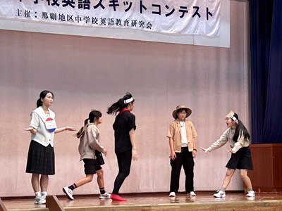 22日土曜日、開邦中学校体育館において行われた那覇地区英語スキットコンテストで、本校生徒代表が最優秀賞を受賞しました!そして、県大会に進むことが決定しました!ヤンバルクイナとマングースが登場するストーリーで、外来種も絶滅危惧種の在来種も共に大事な命を訴えています。次のステージに向けて練習は続きますが、那覇地区の代表として頑張ってほしいです! 英語科の先生方、弥生先生、アマンダ先生、ご指導よろしくお願いします!
