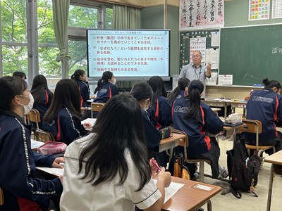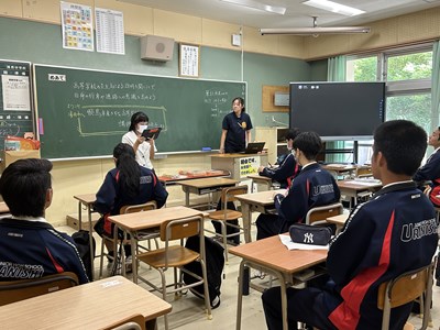 本日5.6校時、3年生対象に高校の先生方をお招きし進路学習会が行われました。浦添高等学校、陽明高等学校、浦添商業高等学校、浦添工業高等学校、那覇国際高等学校、飛鳥未来きずな高等学校の先生方に、学校の特色やこんな生徒にぜひ来てほしい!という熱い思いを語っていただきました。高校生の学んでいる姿や学校行事の様子、資格取得や進路先など、生徒の皆さんは社会にはばたく未来の自分の姿も思い浮かべながら話を聞いてくれたと思います。高校の先生方、お忙しい中どうもありがとうございました!