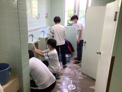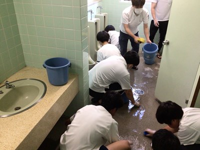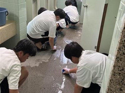 株式会社「てだこ」の皆さんと一緒にトイレ掃除に学ぶ美化活動が今年度も本格的にスタートしました。朝の活動として、初日の今日は多くの2年生が参加しました。毎日使用するトイレをきれいにしながら、心が磨かれていく活動になると思います!頑張れ2年生!!!