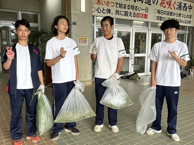 29日(土)の8時30分より、今年度初めてのPTAふれあい作業が実施されました。3年生と保護者の皆さん、本校職員が早朝から集まってくれて、およそ1時間30分暑い日差しの中頑張ってくれました。7月5日に行われるKZNプロジェクトが、きれいな運動場で実施することができます。保護者の皆さま、ご協力ありがとうございました!3年生の皆さん、部活動で参加してくれた1、2年生の皆さん、笑顔で頑張ってくれるたくましい姿、うれしかったです。みんなに愛校心が育っています!