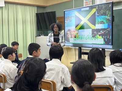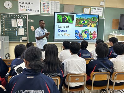 7月2日の5.6校時、市内のALTの先生方が浦西中学校に来てくださり、ICEプログラムが実施されました。ALTの先生方の出身の国について多くの情報を知ることができ、食べ物クイズに挑戦したり、サンバのステップを教えてもらったりしながら、楽しいコミュニケーションの時間になりました。オランダ、ジャマイカ、ブラジル、アイスランド、ブルネイそれぞれがどんな国なのか、人々の暮らしはどうなのか、初めて出会う情報に興味津々の1年生でした。