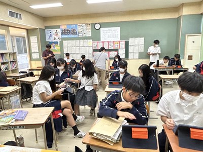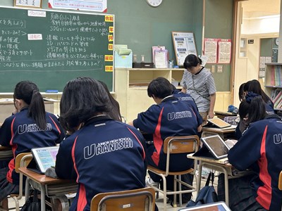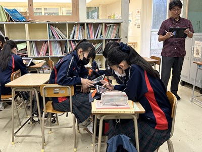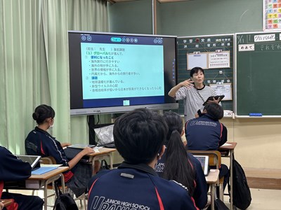 本日1校時に田仲里子先生の社会科の研究授業が行われました。対象クラスは3年4組です。グローバル化・少子高齢化・情報化が進む中、様々な課題がでてきますが、どんな対策が取られているか、自分にできることは何かを考える授業となりました。グループになって、国際的には?日本では?沖縄では?と、それぞれどんな解決策が考えられているかを検索して、身近なものからSDGsにつながるものまで、お互いの調べたことを共有しました。最後の振り返りでは「全員が快適に暮らせる社会にするために」というキーワードが出てきました。公民を学習する上でとても大切なことですね。