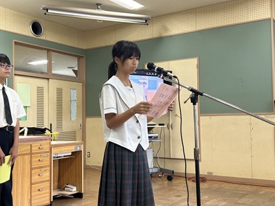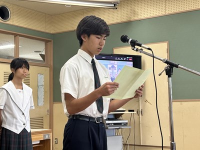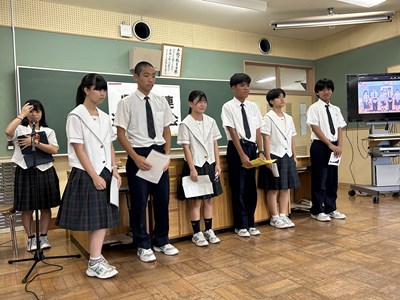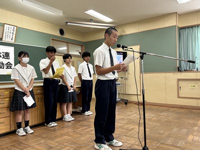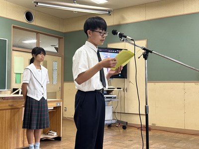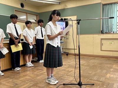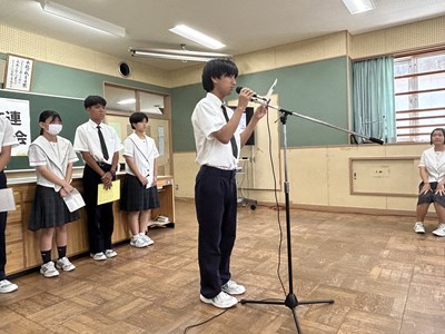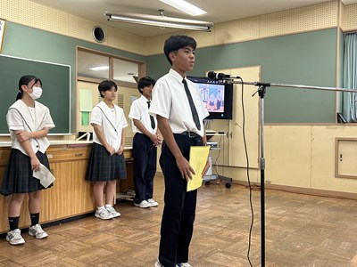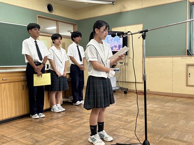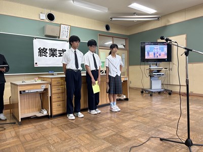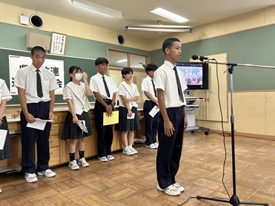 本日、1学期終業式がオンラインで行われました。各学年生徒代表が1学期を振り返り堂々とあいさつをしてくれました。自分自身の成長と学年としての2学期への思いがつづられていました。