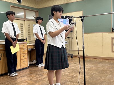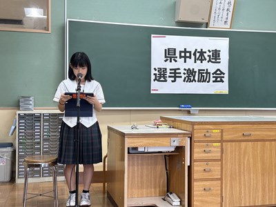その後行われた県中体連激励会では、那覇地区の代表として出場する、男子バドミントン部、女子バドミントン部、男子テニス部、女子ハンドボール部、男子ハンドボール部、また県吹奏楽コンクールに吹奏楽部が出場します。各部のキャプテンから意気込みが語られました。団長さんたちによる応援ダンスは、画面越しではなく舞台で見たかったです。さあ、週明けから始まる夏季総体と吹奏楽コンクールに出場する皆さん、ベストを尽くして頑張ってください!