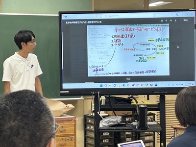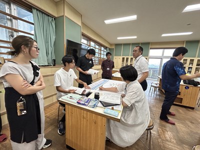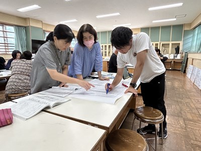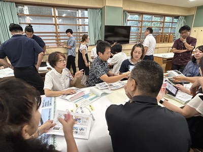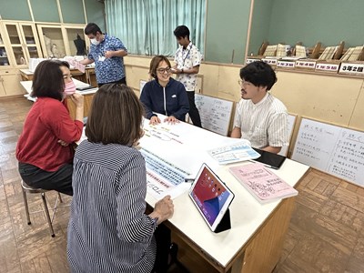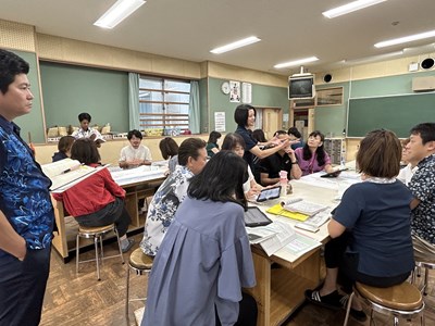 夏休みの期間は、先生方も研修で頑張ります。浦西中学校では23日から25日の3日間、大学の先生や、地域、企業の方々を講師にお招きし、ワークショップ形式の校内研修が行われました。グランドデザインの中間評価を通して2学期に向けての対応策を検討したり、至逞タイムデザイン修正会では、琉球大学の杉尾先生による理論講習とともに、次年度に向けたカリキュラムの修正を行いました。プロジェクト型学習デザイン会には、地域企業の社長さん、沖縄コンベンションビューロー、映像制作会社のCMCから各学年のワークショップに参加いただき、直接アドバイスをもらいました。小禄中、知念中からも浦西中の校内研を参観にいらしていて、社会とつながる実り多い研修となりました。この成果をしっかりと2学期からの教育活動にいかしていきます!