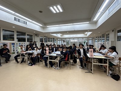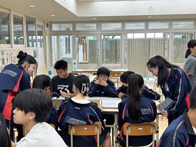 本日午後、リーダー研修①が行われました。浦西中リーダーに求める7か条をみんなで読んだ後、仲間づくりのインプロ&PAワークショップを行いリーダー研修がスタートしました。心も体もゲームでほぐれた後、今年度の浦西High祭のスローガンの案を各団で提案するワークショップが行われています。5つの団から提案されたスローガン案を夏休み明けのリーダー研修③で全校生徒が投票して決定します。どんなスローガン案が出るか楽しみです。