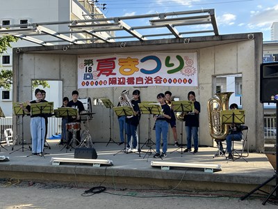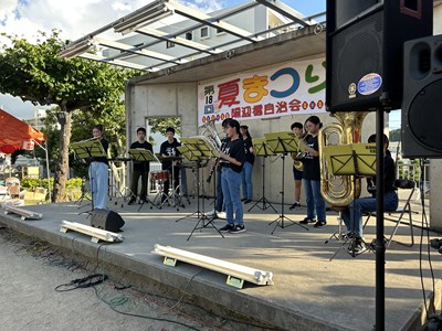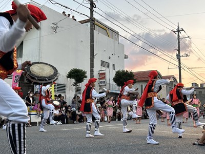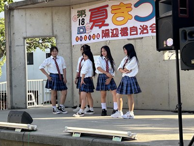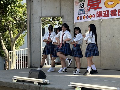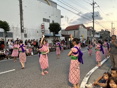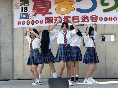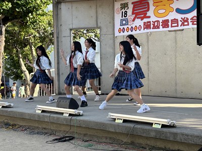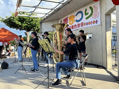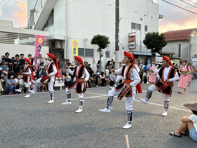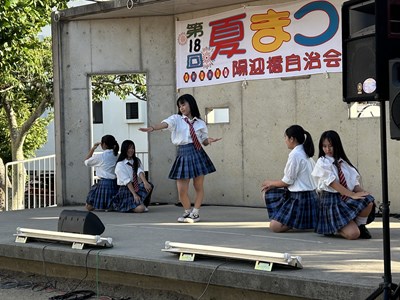 夏休み期間に各自治会の夏祭りが開催されています。本校生徒が地域の行事に参加してステージや屋台運営で活躍している姿を見ることができました。写真は陽迎橋自治会夏まつりに参加したダンスチームと吹奏楽部、西原大綱引きでのエイサーの様子です。若い力が地域を盛り上げている姿はとても素晴らしいです。