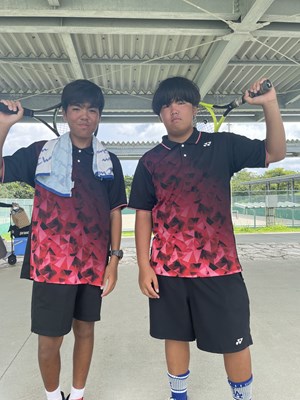 テニス部1・2年生大会男子の報告が届いています。辺士名・新垣ペアが県ベスト16まで残りました。1年生の部では中村・與那原ペアが県で見事優勝、棚原・平田ペアがベスト8という素晴らしい成績を収めました。今後の活躍に期待します!