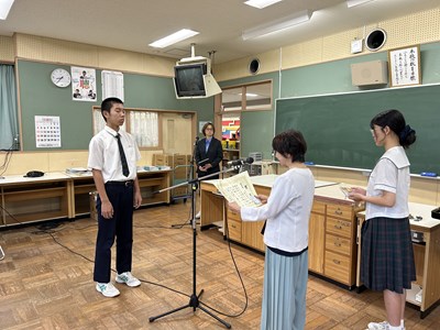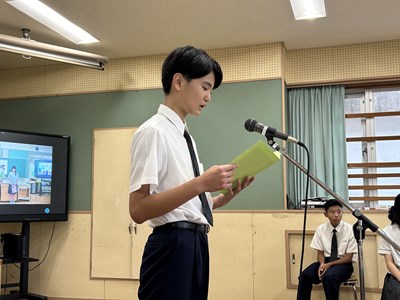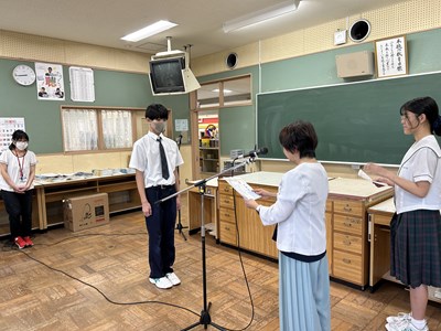 浦西中学校に全校生徒の笑顔があふれています。今日から元気に2学期のスタートをきりました。生徒会総務の皆さん、放送委員の皆さんが先生方と一緒に準備をしてくれて、オンラインでの始業式を行いました。各学年生徒代表あいさつで、それぞれの学年らしさがいっぱいの決意表明をしてくれました。その後、各部活動の大会やコンクール、検定合格者の表彰を行いました。今回も多くの皆さんを表彰することができました。