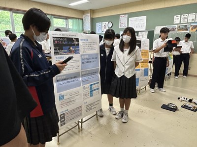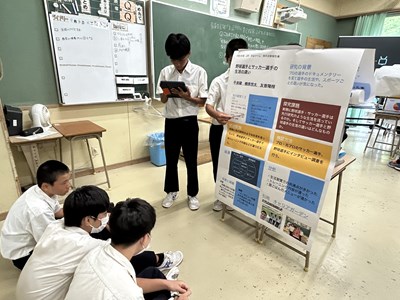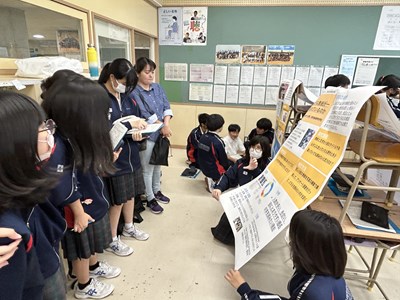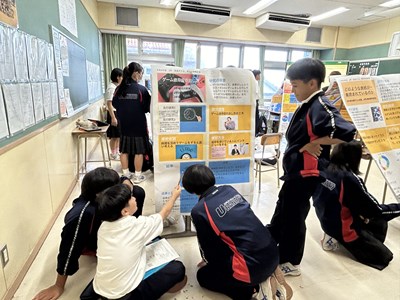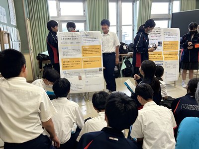 本日、1・2学年では総合的な学習の時間「至逞タイム」で取り組んできた自己探究の成果をポスターセッションの形式で報告会を実施しました。2学年では報告するグループ、質問するグループに分かれて、お互いの探究成果を共有しながら、質問タイムでは時間いっぱいいろいろな質問を投げかけました。授業参観で保護者の方も輪に加わって、真剣に子どもたちの報告に耳を傾けてくださいました。
