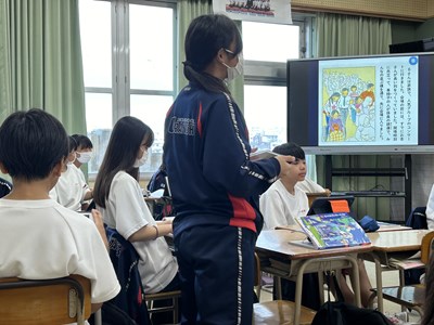 本日2校時、1年2組において大城裕樹先生による道徳の研究授業が行われました。公平と不公平についてイラストを見ながらグループでお互いの考えを述べていました。公平とはどういうことか、2組さんは「その人のことを考えて同じように扱うこと」「みんなが納得することを考えること」「自分の価値観を押し付けないこと」など、自分たちが考える公平についていろいろと発表してくれました。ケーキを切るとき、列に並ぶとき、グループ活動するときなど、今日扱った様々なシーンでまた公平について新たに気づくことがあるといいですね。