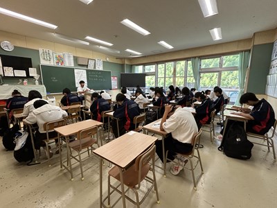 今朝は美術の単元テストが実施されました。1年生から3年生まで、真剣に取り組んでいました。