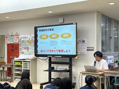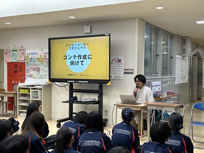 3学年のハッピームービープロジェクトで有限会社CMCの皆さんが講師として来てくださいました。ターゲットをハッピーにするには?ということでフィールドワークでインタビューをした3年生が実際に動画を制作する絵コンテ作成を行います。今日は動画制作会社のプロデューサーやディレクターをお招きし直接質問できる絶好のチャンスです。15秒に込める誰かをハッピーにするメッセージ、3年生の試行錯誤が止まりません。