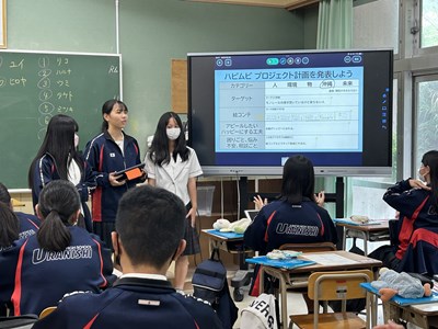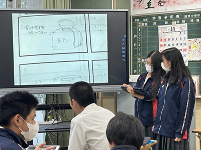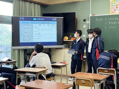 3年生のハッピームービープロジェクトでは動画制作会社CMCさんからの専門的なアドバイスを受けた後、プロジェクト計画を発表し、お互いに批評する活動を行っていました。絵コンテのアイディアやキャッチコピーの計画を聞いて、今後の困り感に付箋紙でアドバイスし合う批評活動です。ターゲットは「人」「環境」「物」「沖縄」「未来」、自分たちのアイディアでターゲットをハッピーにする工夫とは?ムービーになるのが楽しみです!