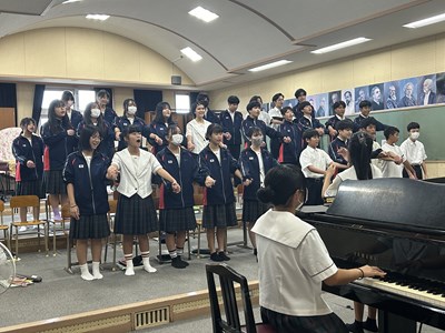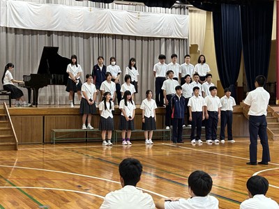 18日月曜日の合唱コンクールに台風の影響が出ることも心配になってきました。てだこホールで開催できるチャンスはこの日だけなので影響のないことを祈ります。写真は昨日の団の練習と今日の音楽の時間の風景です。どのクラスも熱が入ってきています。台風の影響による合唱コンクールの開催についてのお知らせは明日公文で改めてお伝えいたします。