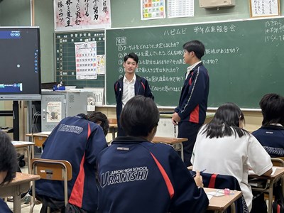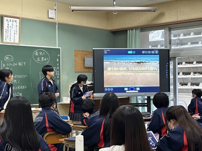 3年生のプロジェクト型探究活動で15秒の動画制作を行いました。世の中の様々なターゲットの課題を解決する動画(CM)を制作した3年生、15秒という短い時間でメッセージを伝えることができるでしょうか。ターゲットをハッピーにするだけではなく、動画を見た人がもしかしたら気持ちや行動が変化するきっかけになるかもしれません。お互いの発表を聞いて質問リストを参考に質疑応答を行いました。中学生ならではのセンスが活かされる作品もあり、見ていてとても楽しいです。この経験から、世の中のあらゆる場面で作り手の意図やメッセージがあることに気づける人に近づいたような気がします。