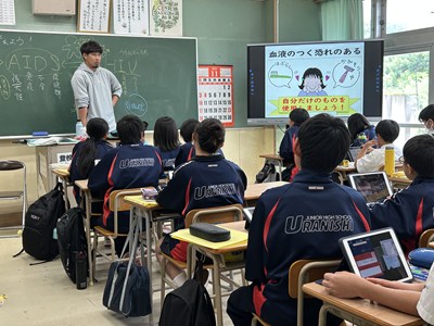 今日は全クラスでエイズ学習会が行われました。エイズに関する正しい知識を身に付けるとともに、思いやりの心を持って差別や偏見のない社会にしていくことの大切さを学びます。