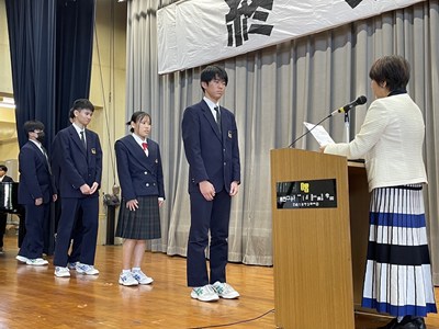 昨日、終業式後に全体での表彰式を行いました。今回表彰したのは以下の通りです。