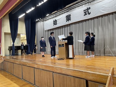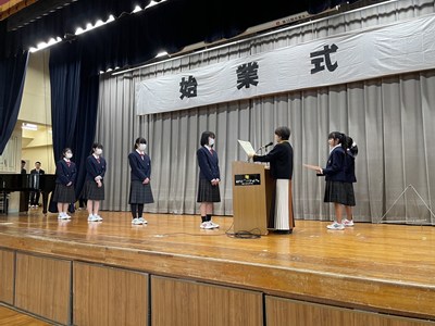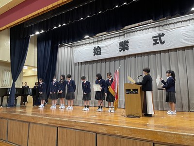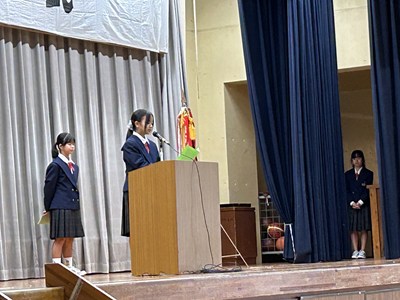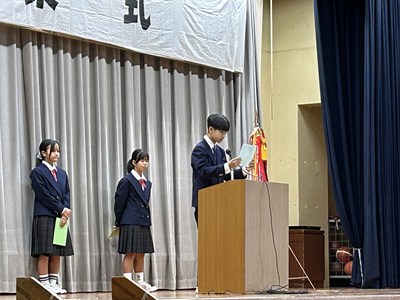本日は三学期の始業式でした。各学年生徒代表のあいさつでは今年の学年としての抱負や受験、進級に向けての新たな決意が語られました。