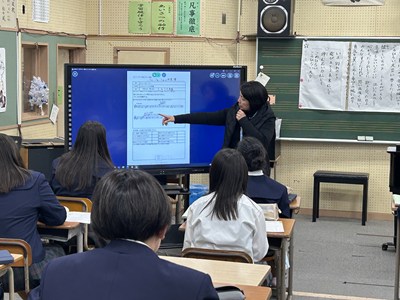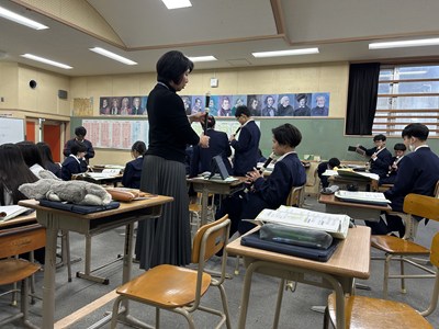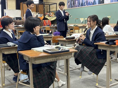 27日3校時に、新垣亜紀先生の音楽の研究授業がありました。アルトリコーダーで「アニーローリー」をどのように演奏したいかを自分で決めて個人やグループで練習をする授業でした。電子黒板で運指を確かめたり、なめらかに演奏できるようブレスに気を付けたり自分たちで考えながら練習をする姿がありました。授業の始めと最後ではかなり上達していた1組さんです。来週のリコーダーのテストみんな頑張ってくださいね。